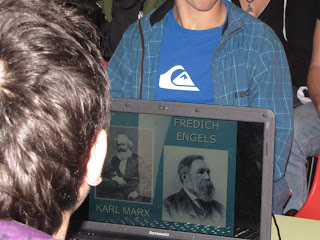 A sesión de hoxe, sobre as biografias e influencias filosóficas de Marx e Engels, preséntana Diego Araújo, David Campos, José Miguel Carreira e Manuel Otero.